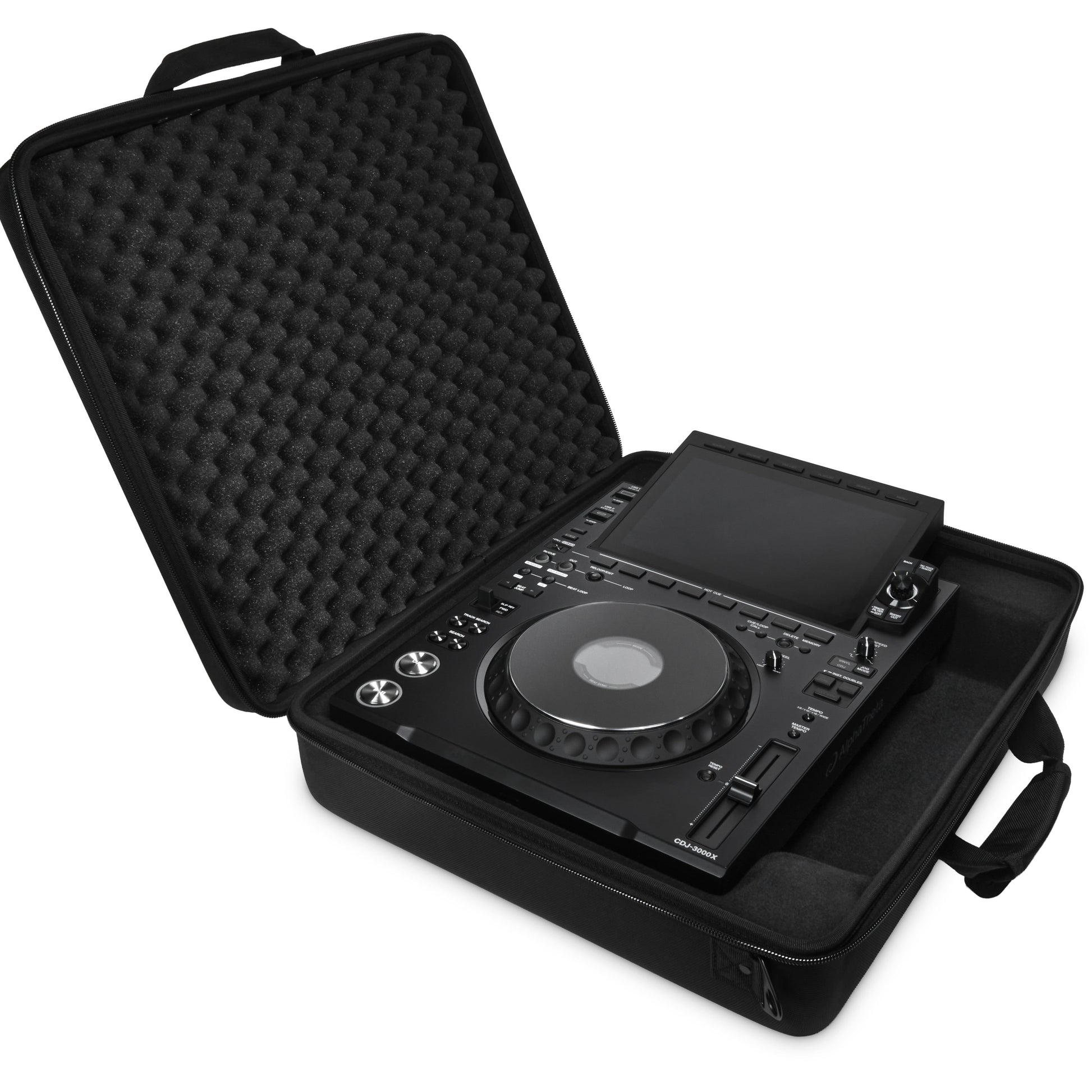 The AlphaTheta DJC-3000X Bag is a lightweight yet protective solution designed specifically for the CDJ-3000X. Built with an EVA Durashock molded body, ballistic polyester, fleece lining, and an egg-foam lid, it shields your player from bumps and scratches while remaining easy to carry.