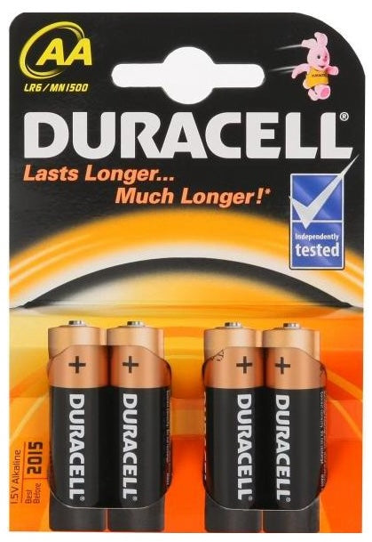 - 4 × Duracell AA/LR6 Alkaline Basic MN1500 Batteries