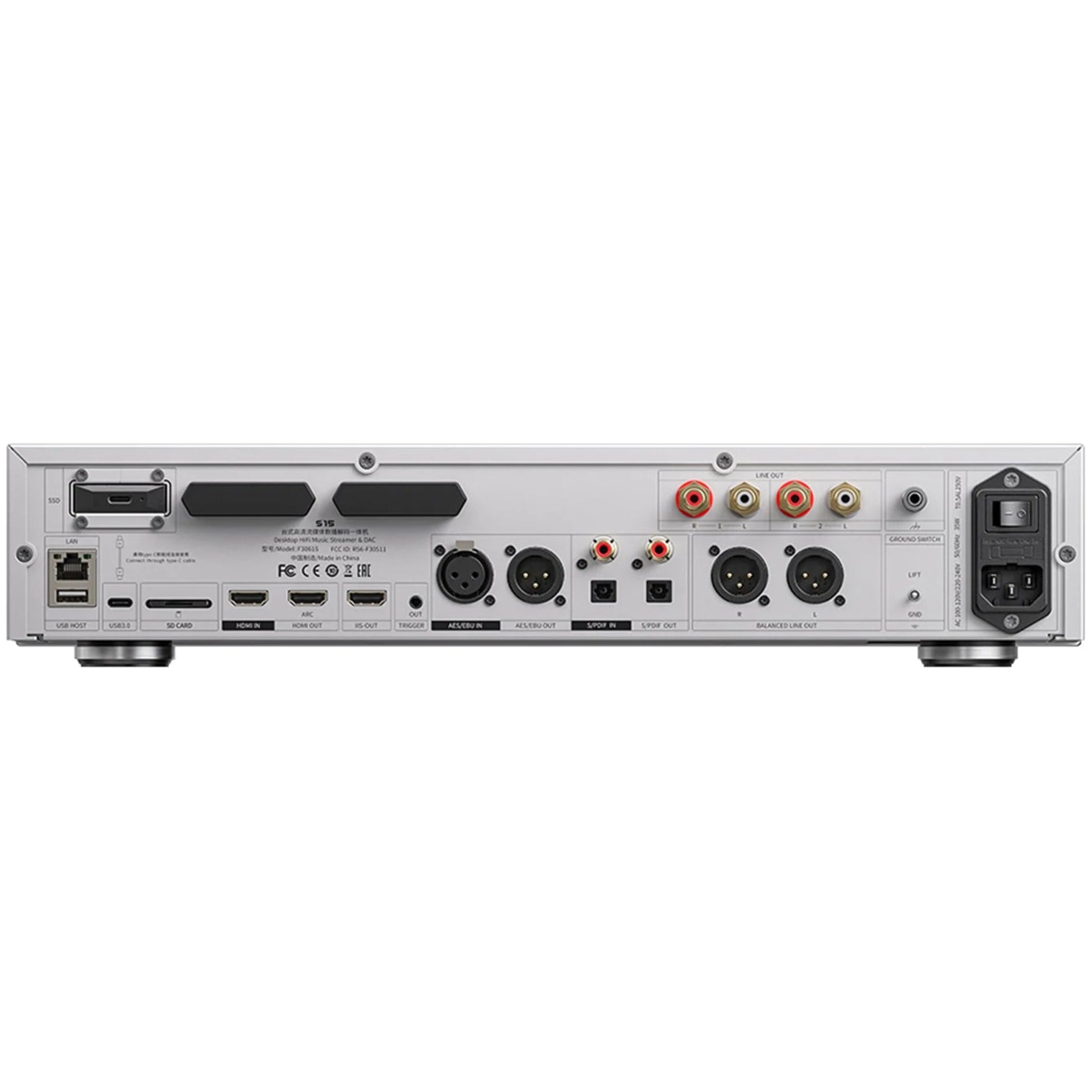 - Versatile I/O: USB-C, USB-A, coaxial, optical, HDMI/ARC, AES, I2S, RCA, balanced XLR outputs, and M.2 SSD slot for local storage