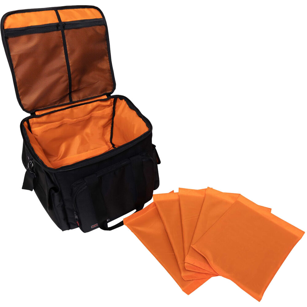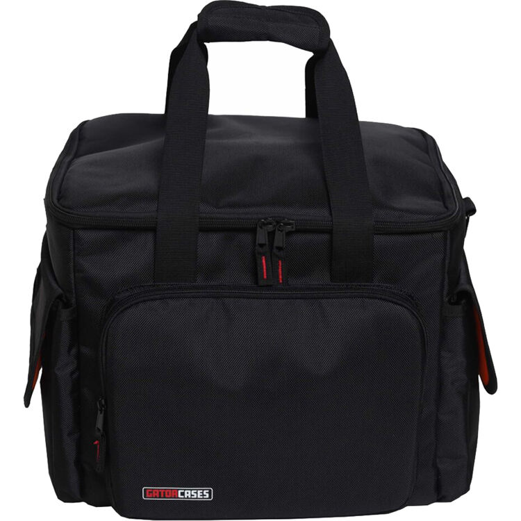 This small-size Cable & Accessory Organization Bag from Gator is designed to keep your cables separated and organized for quick identification. It features five removable padded hook-and-loop dividers and multiple exterior and interior pockets. The bag has a bright orange interior for enhanced visibility in low-light conditions. On the bottom, it has protective non-slip rubber feet.