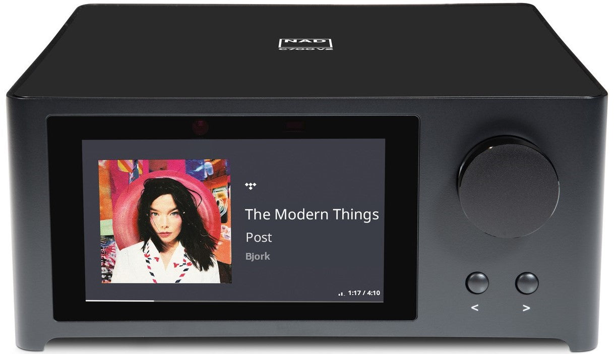 - 5 in colour display: Glass-front touchscreen for album art, track navigation, and settings control.