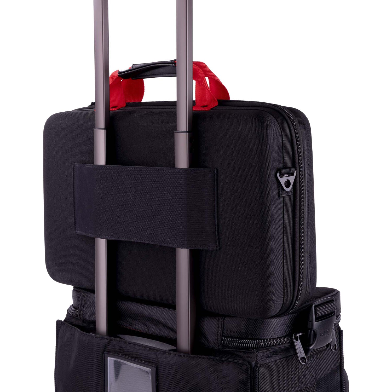 - Carrying options: Vegan leather handle, padded shoulder strap, trolley sling