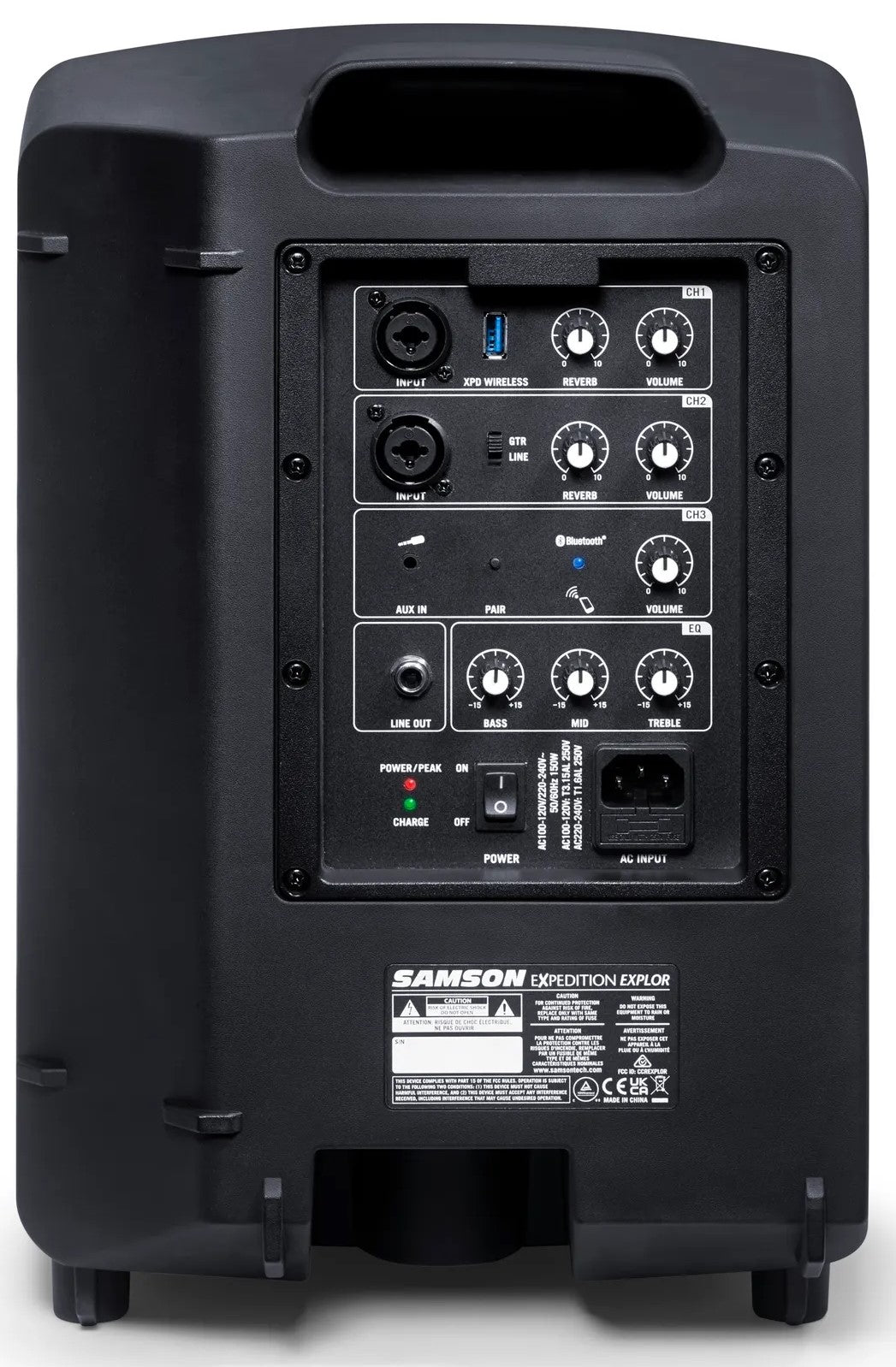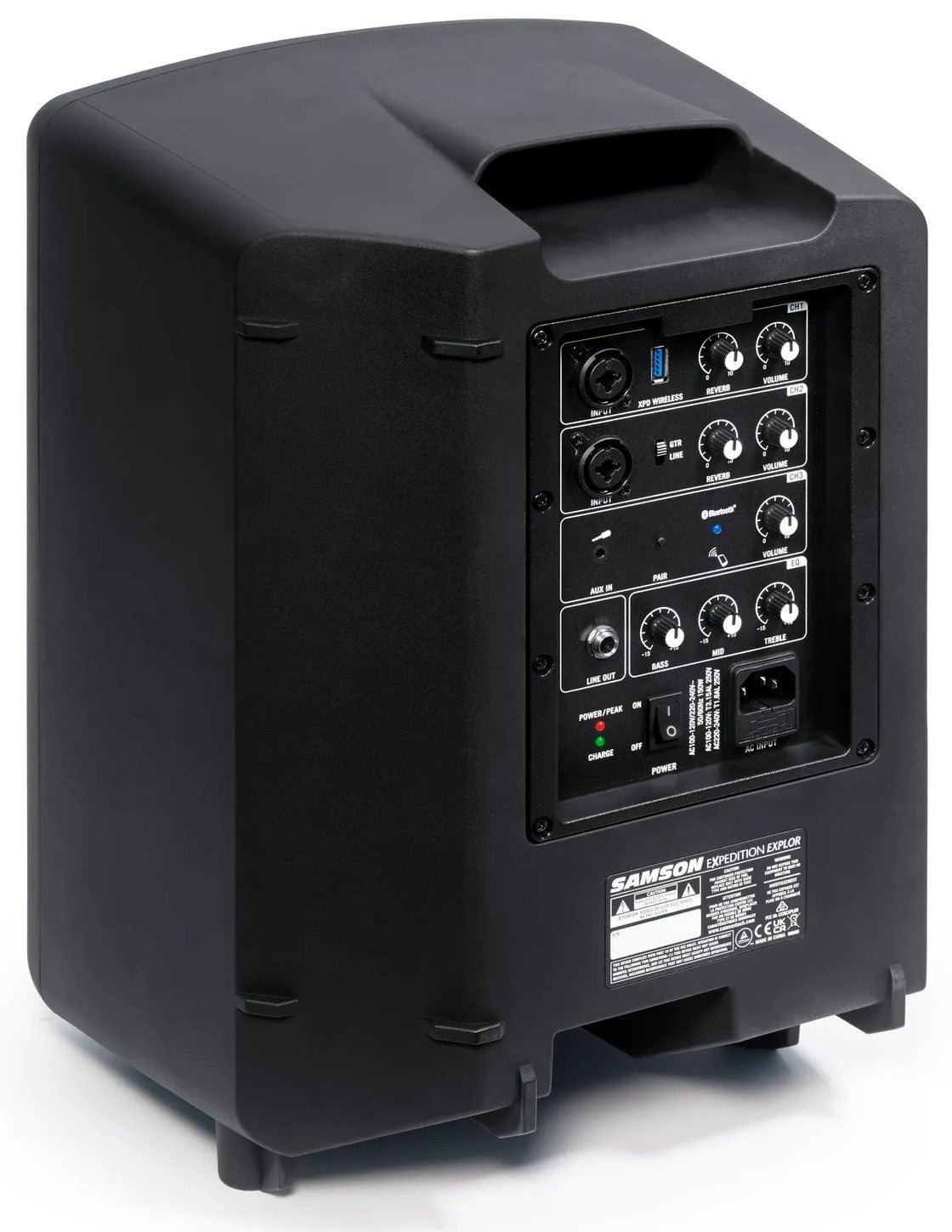 The compact and portable Explor weighs just 15 pounds, but delivers huge sound. The ergonomic top handle makes it easy to grab and go to your next performance, event, or backyard barbecue. Built to deliver great sound to everyone in your audience, the Explor features an innovative 3-way speaker system, which includes an 8" woofer, 3.5" midrange driver, and two 1" high-frequency drivers. Whether you are giving a presentation, plugging in a guitar, or just playing your favorite music, the Explor delivers clear, detailed sound across the entire frequency range.