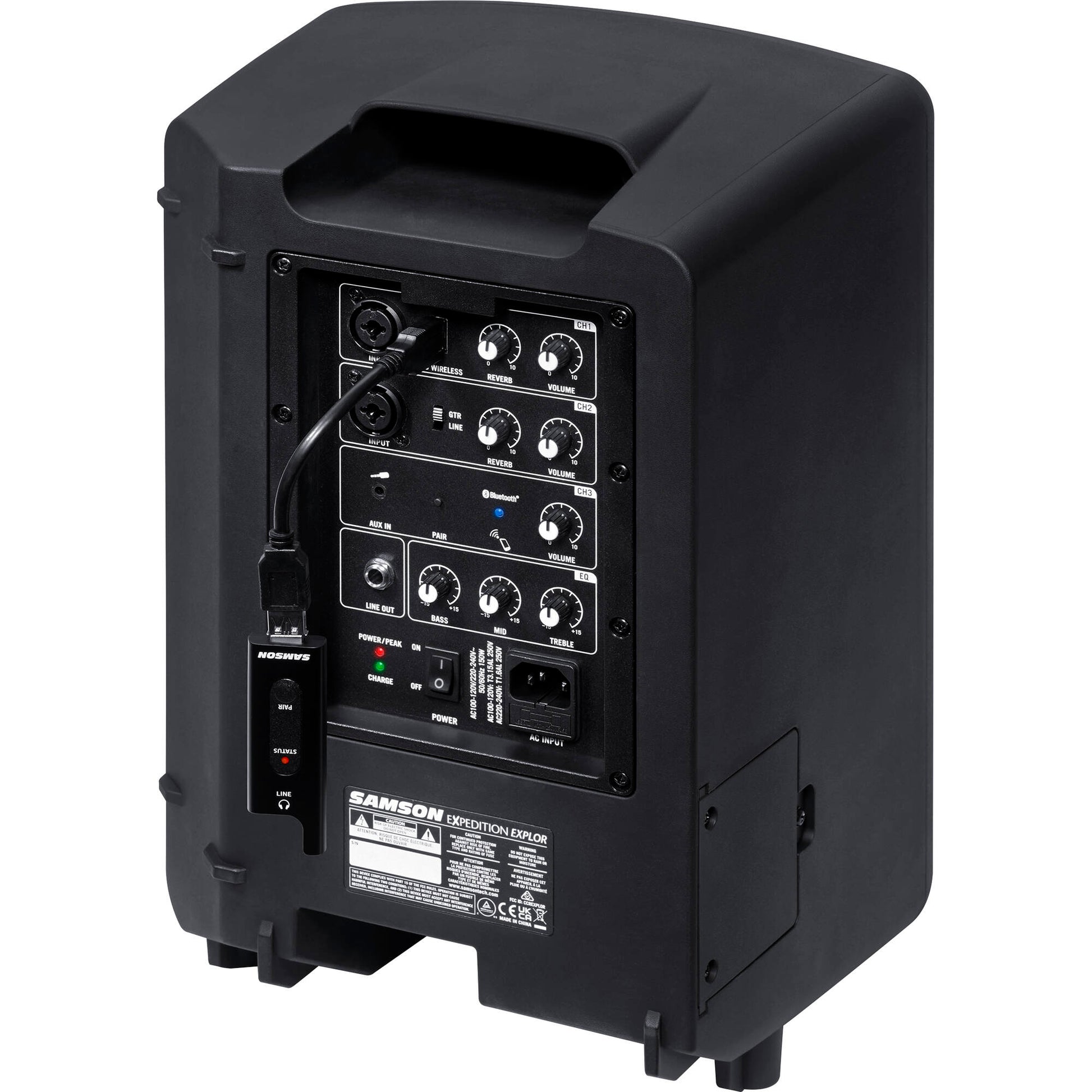 The Explor includes the XPD2 wireless system, which comes with a USB-powered receiver and a wireless handheld supercardioid microphone operating on the 2.4 GHz band, so you can get to work right out of the box. The Explor is well equipped to deliver crystal-clear sound anywhere thanks to its high-capacity lithium-ion rechargeable battery that provides up to 12 hours of operation and versatile positioning options that permit the PA system to be angled vertically, horizontally, tilted back, or mounted on a pole via it's standard, 35mm pole socket.