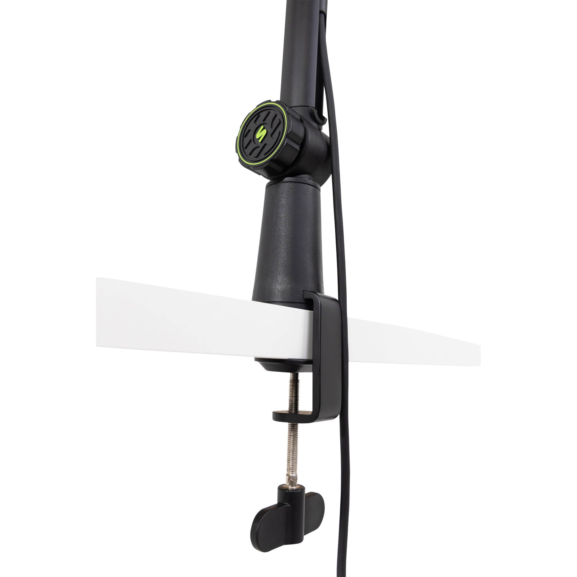 - Mounting: C-clamp for desks up to 5.5 cm thick