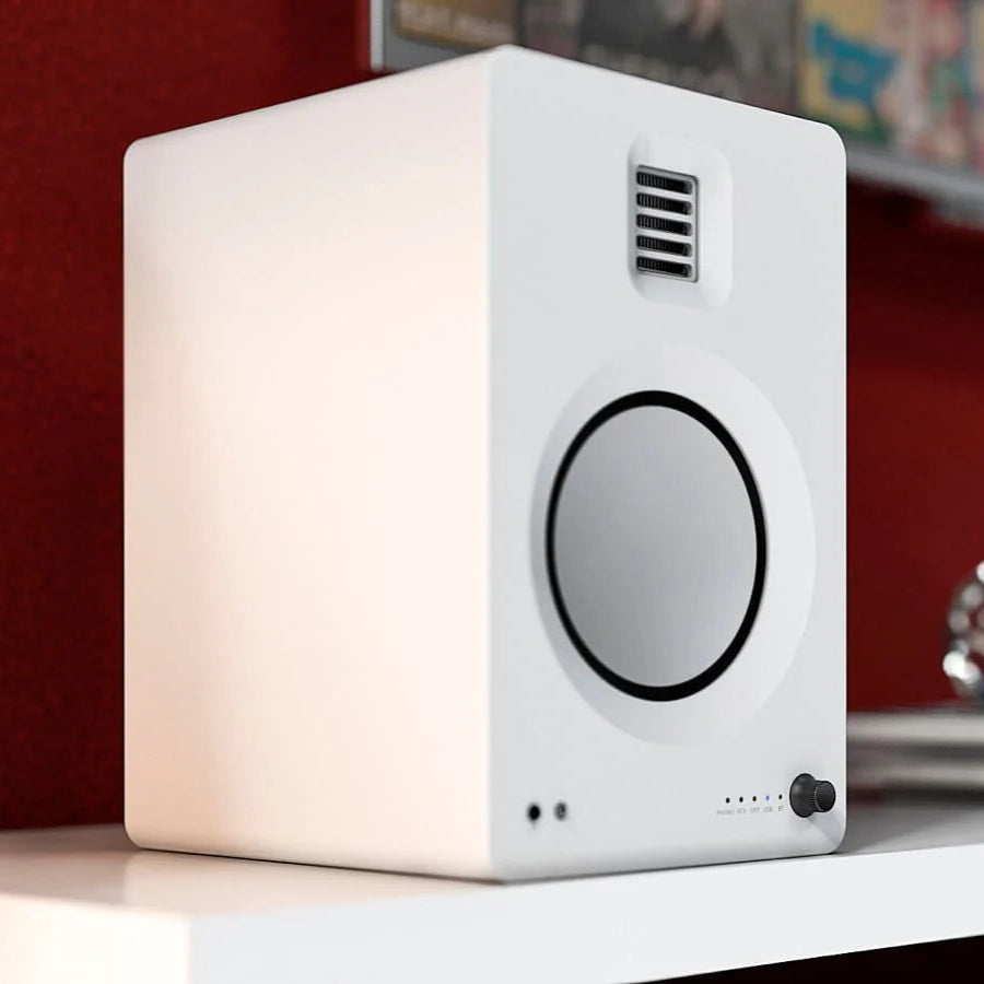 Afspil lyd fra næsten enhver enhed med det matsorte Kanto Living TUK Bluetooth-højttalersystem. De har optiske, 1/8" aux-, USB-, stereo RCA- og dedikerede phono RCA-indgange samt indbygget Bluetooth til trådløs forbindelse. Der er også en jordterminal indbygget, så du kan tilslutte den til din pladespiller. 5V USB-porten holder din mobile enhed opladet under afspilning, og subwoofer-udgangen giver dig mulighed for at tilslutte din yndlingssubwoofer. Hver højttaler har en 5,25" aluminiumswoofer og en 1,1 x 1,38" AMT-diskant, der producerer en RMS-udgang på op til 65W pr. kanal. En IR-fjernbetjening medfølger sammen med højttalerkabel, et 1/8" til RCA-kabel og et USB-kabel til øjeblikkelig forbindelse.