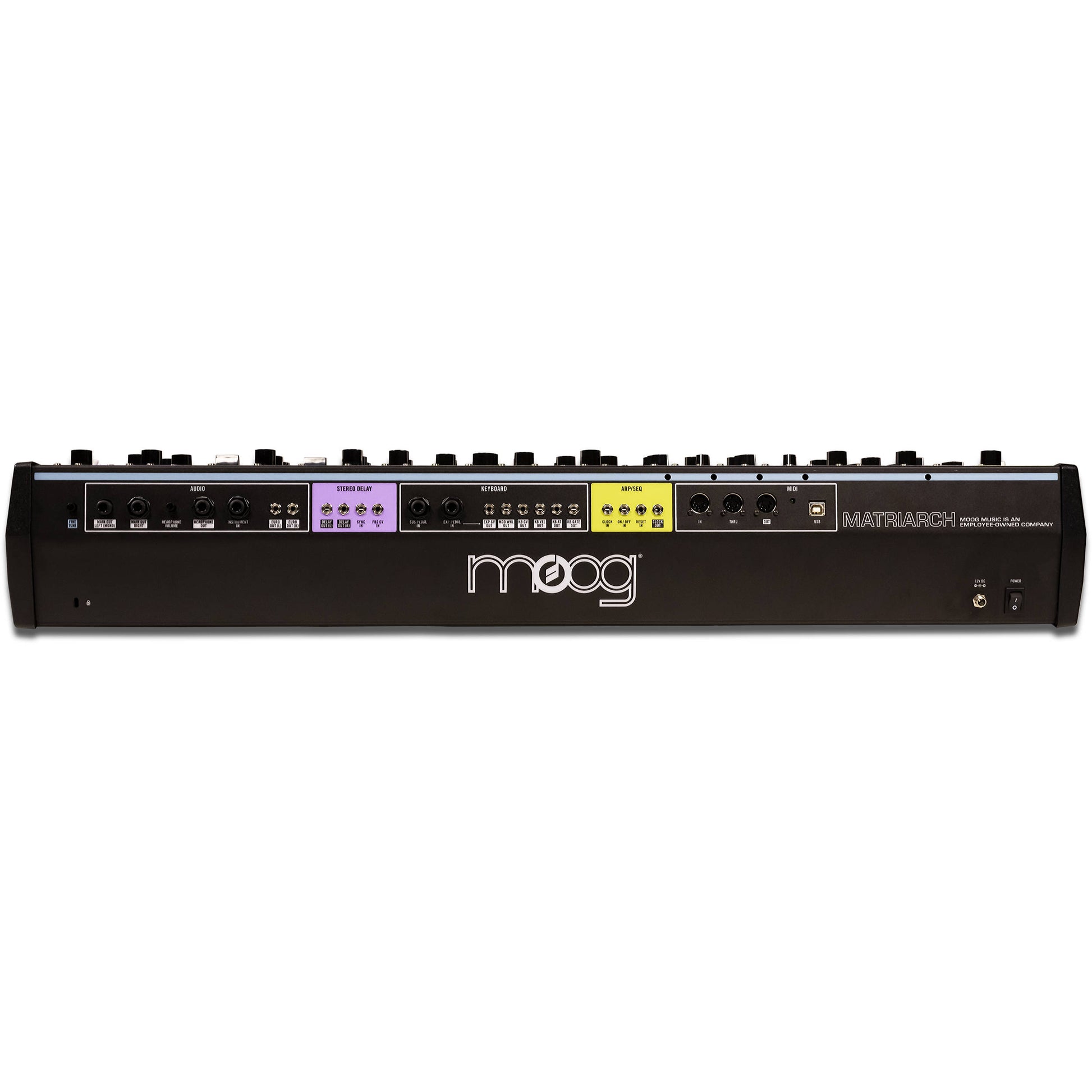 Matriarch er en patchbar 4-toners parafonisk analog synthesizer med indbygget sequencer, arpeggiator, stereo ladderfiltre og stereo analog delay.