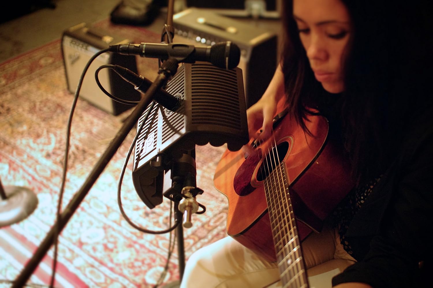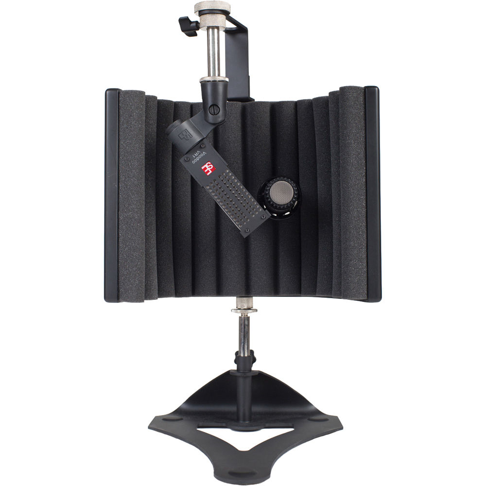 guitaRF Guitar Amplifier Reflection Filter fra sE Electronics giver dig mulighed for at bruge dobbeltmikrofonen til din guitar-, bas- eller keyboardforstærker, samtidig med at den isoleres fra refleksioner fra rum og scene. Filteret består af et 4-lags akustisk filter med et gennemgangshul med gummifinner til en dynamisk eller akustisk mikrofon med lille membran, samt en justerbar montering til en kondensatormikrofon med stor membran eller båndmikrofon. Hele samlingen kan justeres og monteres på et mikrofonstativ for mere frihed i placering. Ud over forstærkermikrofonering kan guitaRF-filteret bruges i en række forskellige akustiske og trommemikrofoneringsapplikationer.